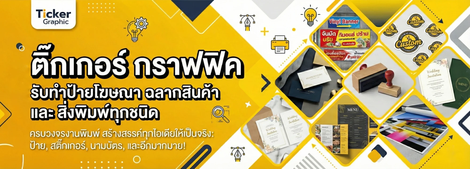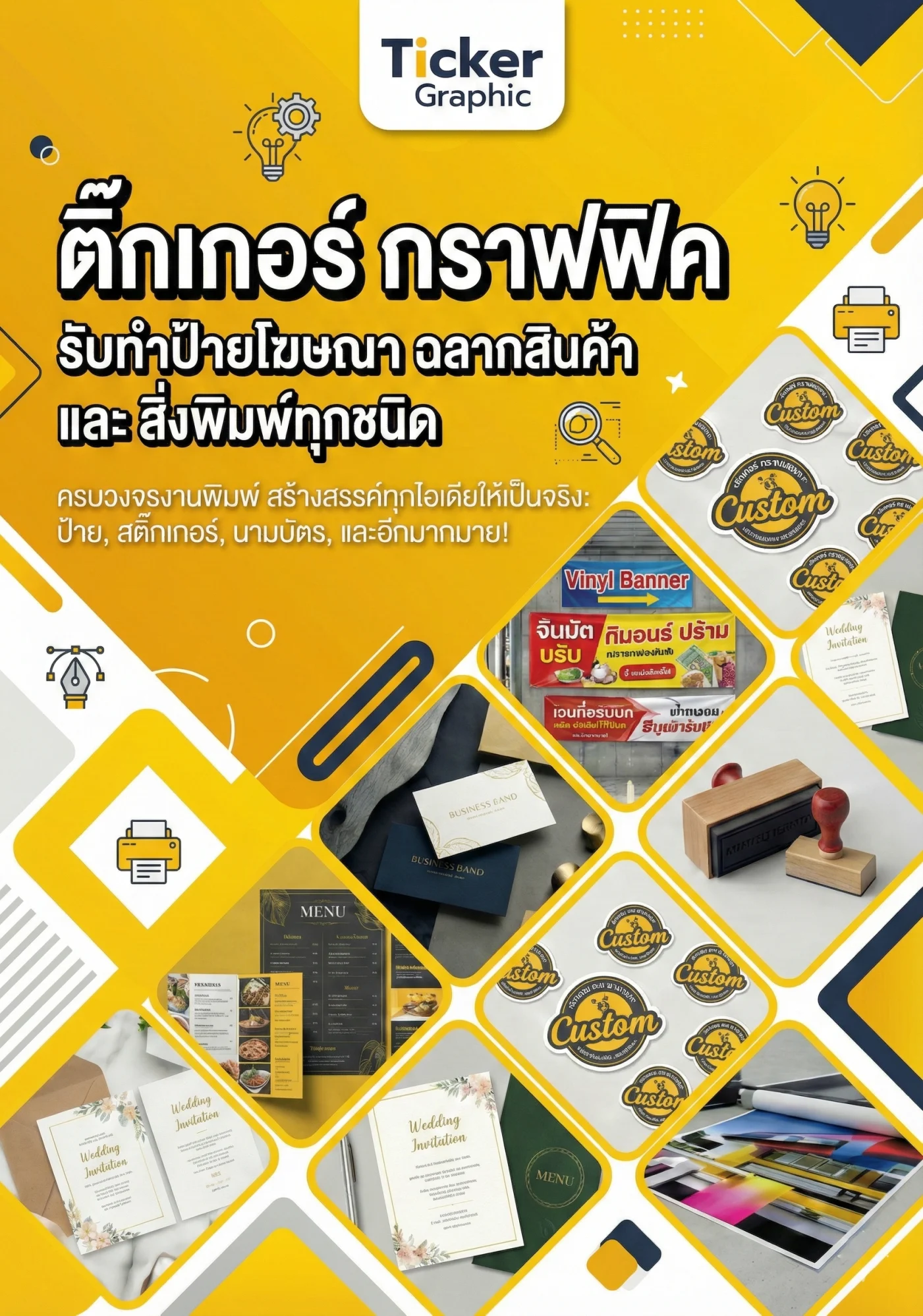 บริการรับทำป้ายโฆษณา ฉลากสินค้า สติ๊กเกอร์กันน้ำ นามบัตร ตรายาง การ์ดพิธี เมนู โบรชัวร์ และ สิ่งพิมพ์ทุกชนิด